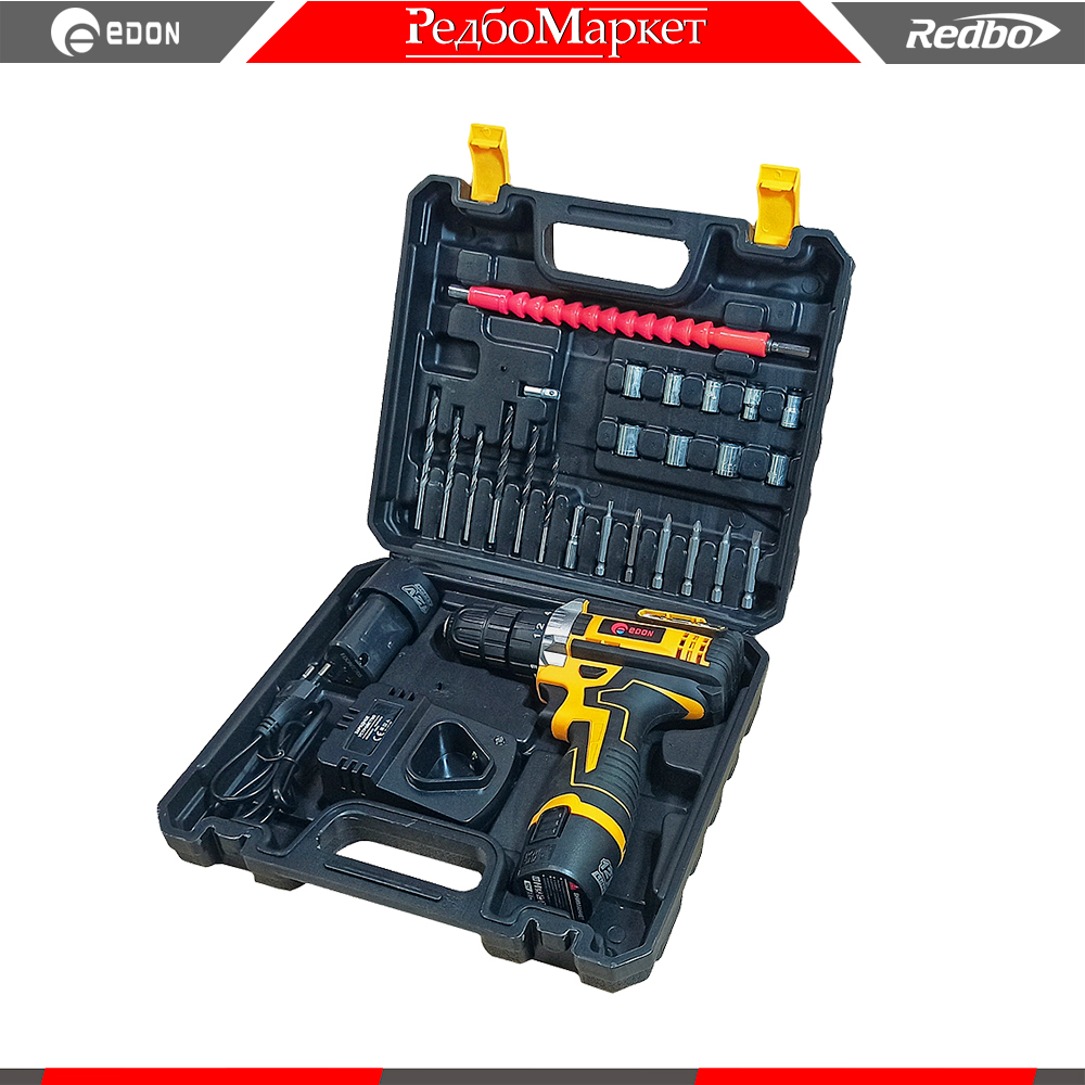 Комплект поставки: шуруповерт, 2 аккумулятора, зарядное устройство, набор насадок, пластиковый кейс, паспорт-инструкция.