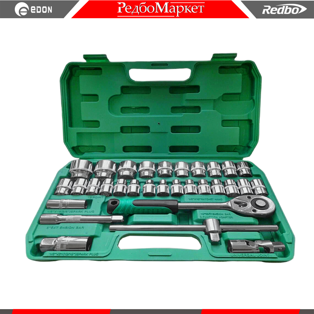 - головки торцевые 1/2'' (8,10 (2),11,12 (2),13,14 (2),15 (2),16,17 (2),18,19(2),20(2),21,24,27,30,32 мм.) - 25 шт.;